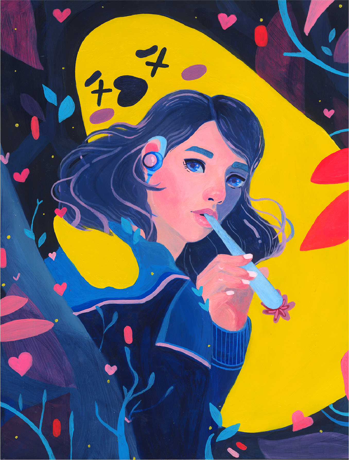 Traditional: I typically use Acrylic paint for wet mediums, and a variety of dry tools to get interesting textures!